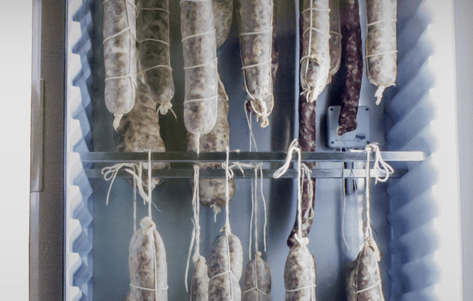 The perfect environment for the seasoning of small quantities of cured pork meat